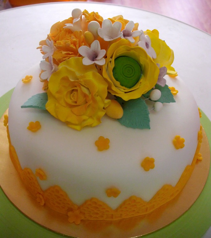 FONDANT HANTARAN CAKE WITH HANDMADE FLOWERS